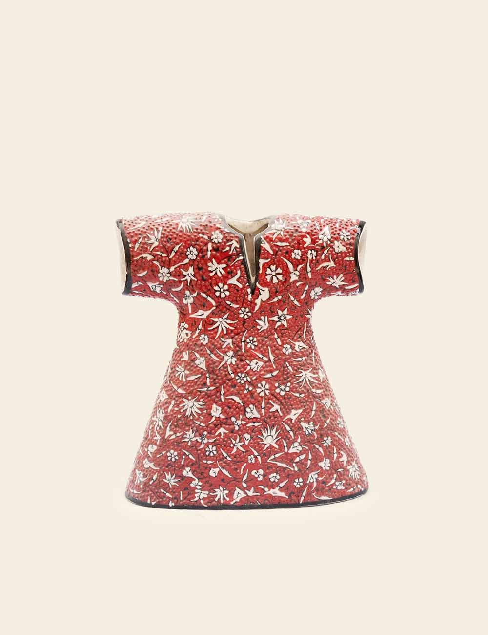 A delicate ceramic art piece inspired by the flowing elegance of traditional qipao dresses, perfect as a standalone decorative element or cultural accent in styled interiors.