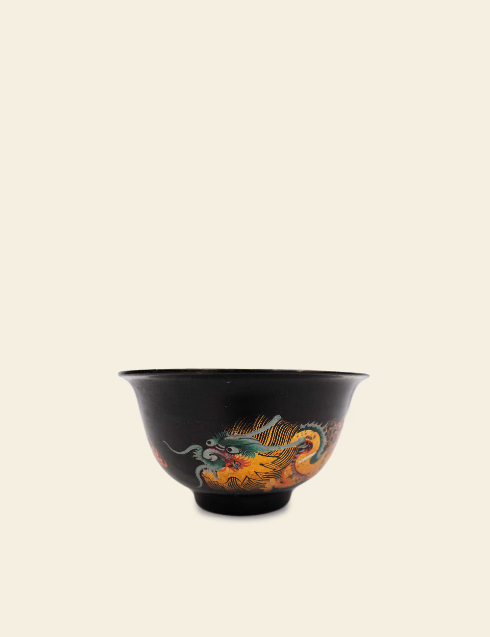 A lightweight lacquered bowl showcasing traditional Foochow craftsmanship, featuring intricate layered designs - perfect for cultural displays or as an elegant prop.