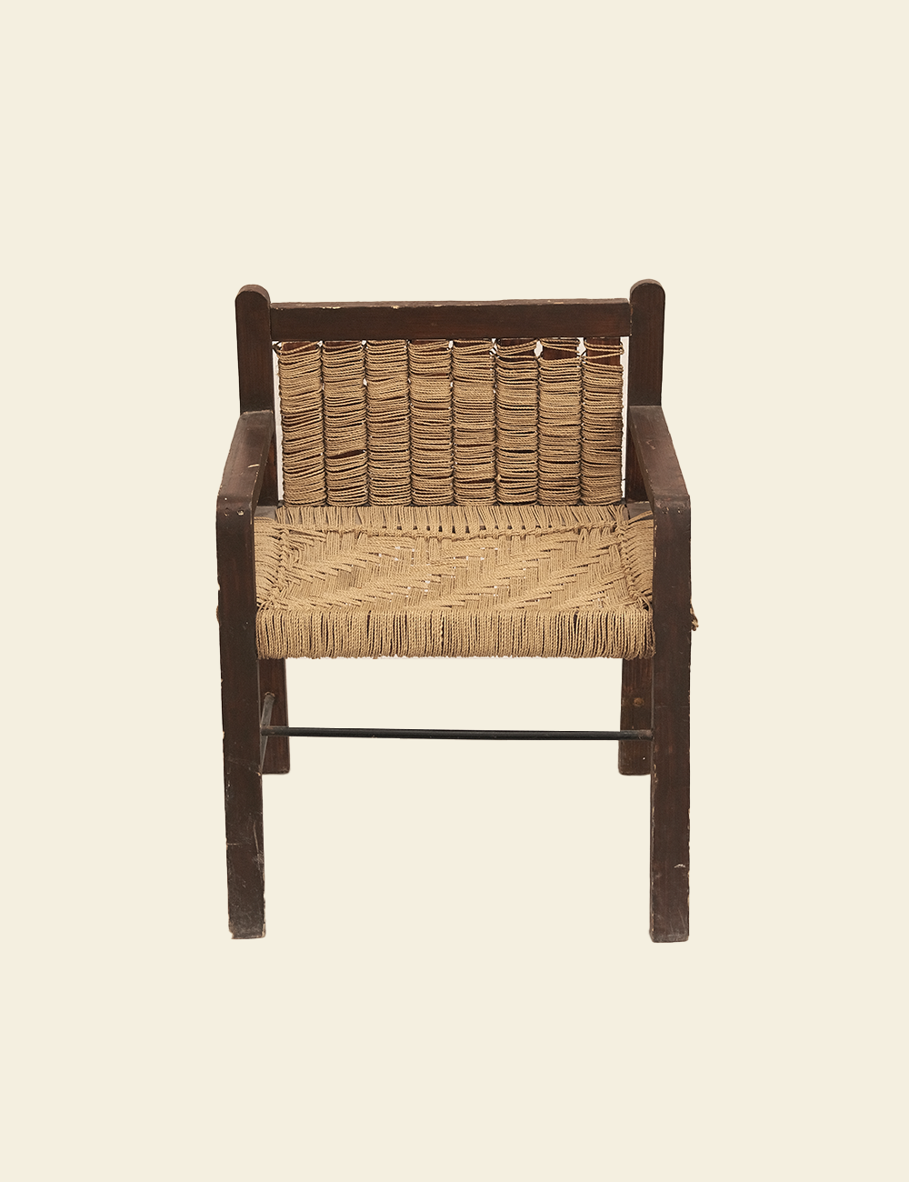 A rare vintage armchair inspired by Francis Jourdain’s minimalist design ethos, this piece combines timeless elegance with sturdy craftsmanship—ideal for classic editorial shoots or refined interior setups.