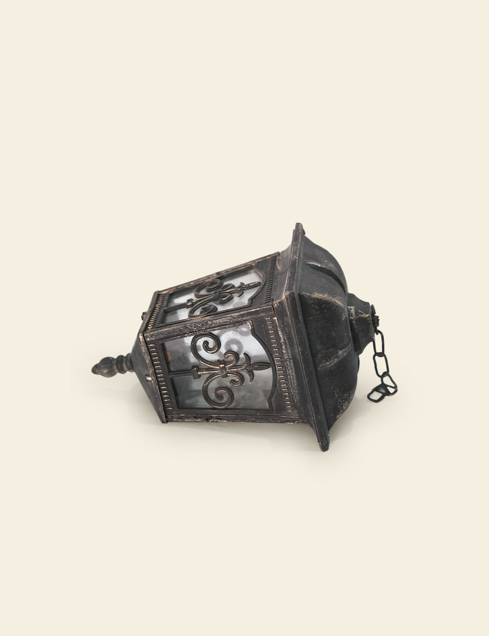 An ornate metallic gate light inspired by traditional Noor Mahal motifs, perfect for regal, vintage, or cultural set designs.