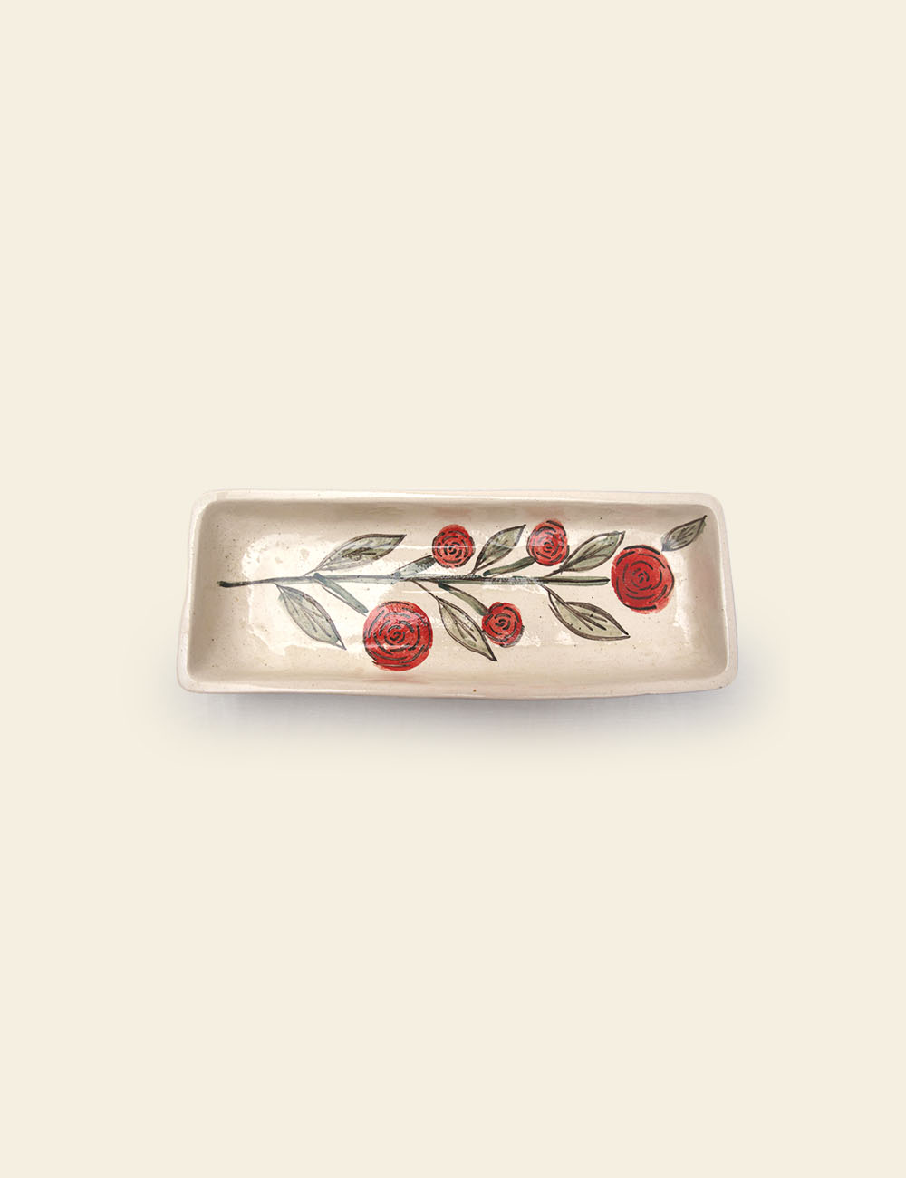 A vibrant ceramic tray featuring bold red poppy blooms, perfect for cheerful breakfast settings or as a colorful surface for styled product photography.
