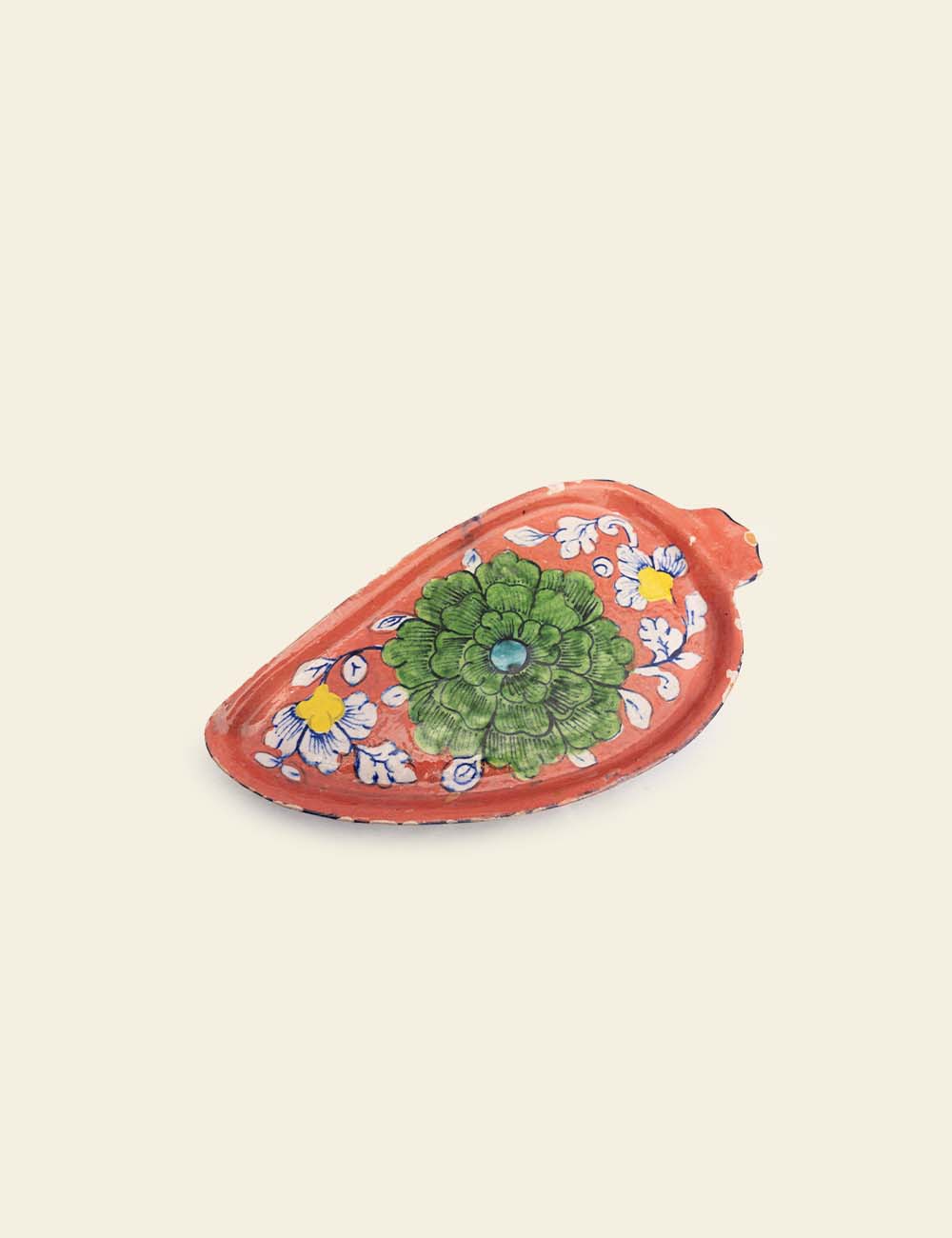 A hand-painted ceramic dish featuring vibrant Spanish motifs, perfect for cultural table settings or as a colorful decor accent in styled shoots.