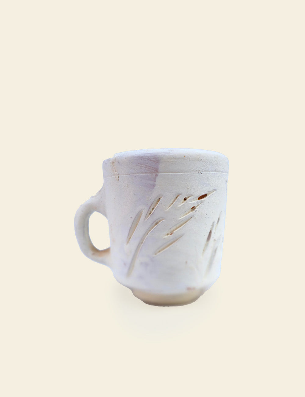 A matte-finish mug blending warm terracotta tones with creamy white clay, featuring subtle throwing marks. Ideal for artisanal coffee shoots, rustic tablescapes, or as a textural still life element.